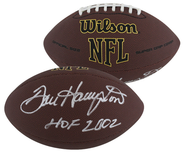 This Autographed Wilson Super Grip Nfl Football with the inscription of "HOF 02" has been Personally Signed by Dan Hampton of the Chicago Bears. This item is 100% Authentic to include a hologram by Beckett Authentication Services. This item may come with the new Beckett Authentication hologram that has a scannable QR code rather than the traditional COA. If you would like to have a COA, you are welcome to reach out to Beckett for a printed certification once you receive your item. This is a BAS Witnessed Protection Program item which means a Beckett Authentication Service representative was present when this item was being signed. We conducted an autograph signing with Dan Hampton where multiples of the same item were signed. While the photographs are representative of this item, the size, placement and strength of the signature may vary. Each item is hand signed, therefore, each autograph is unique. This item can be verified through BAS Witnessed.
