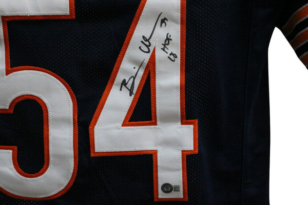 Brian Urlacher Autographed/Signed Pro Style Blue XL Jersey HOF Beckett 35404 The number in the listing title is just an inventory sku for our records and is not the authentication number. The item pictured is a stock photo unless otherwise noted. This is a custom pro style navy blue XL jersey with sewn on name and numbers that was personally autographed by Brian Urlacher. Includes a certificate of authenticity from Beckett Authentication Services (BAS) and Denver Autographs.