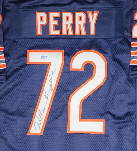 Custom Replica Jersey hand signed by Chicago Bears Super Bowl Champ WILLIAM PERRY. The signature is in Black Sharpie. This jersey was signed at a private signing with us and would make a great addition to any Bears collection! Jersey is size XL and all letters and numbers are sewn in. This item is guaranteed to be 100% authentic and will include a COA hologram from Beckett authentication.