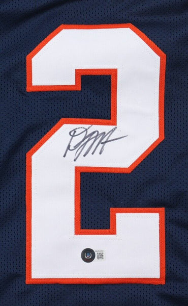 Custom on-field style jersey. Everything is sewn on, size adult XL. Hand-signed by D. J. Moore.The autograph includes an official Beckett Authentication Services serially numbered hologram for authenticity purposes. The signing of this item was witnessed by Beckett.Authentication: Beckett Hologram