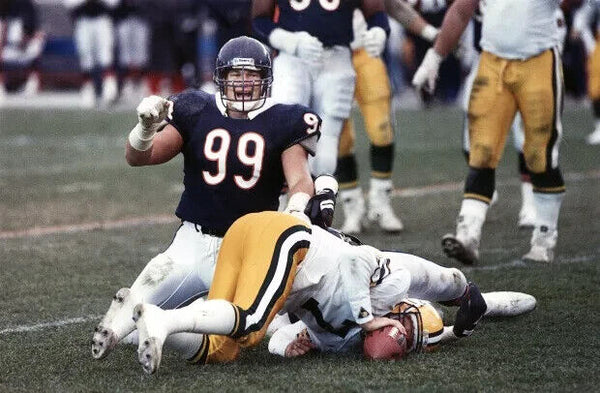 Custom on-field style jersey. Everything is sewn on, size XL. Hand-signed and inscribed in black felt-tip pen by Dan Hampton (HOF). The lot / autograph(s) includes an official Beckett Authentication Services serially numbered hologram and matching COA for authenticity purposes. The signing of this item was witnessed by Beckett.Authentication: Beckett COA