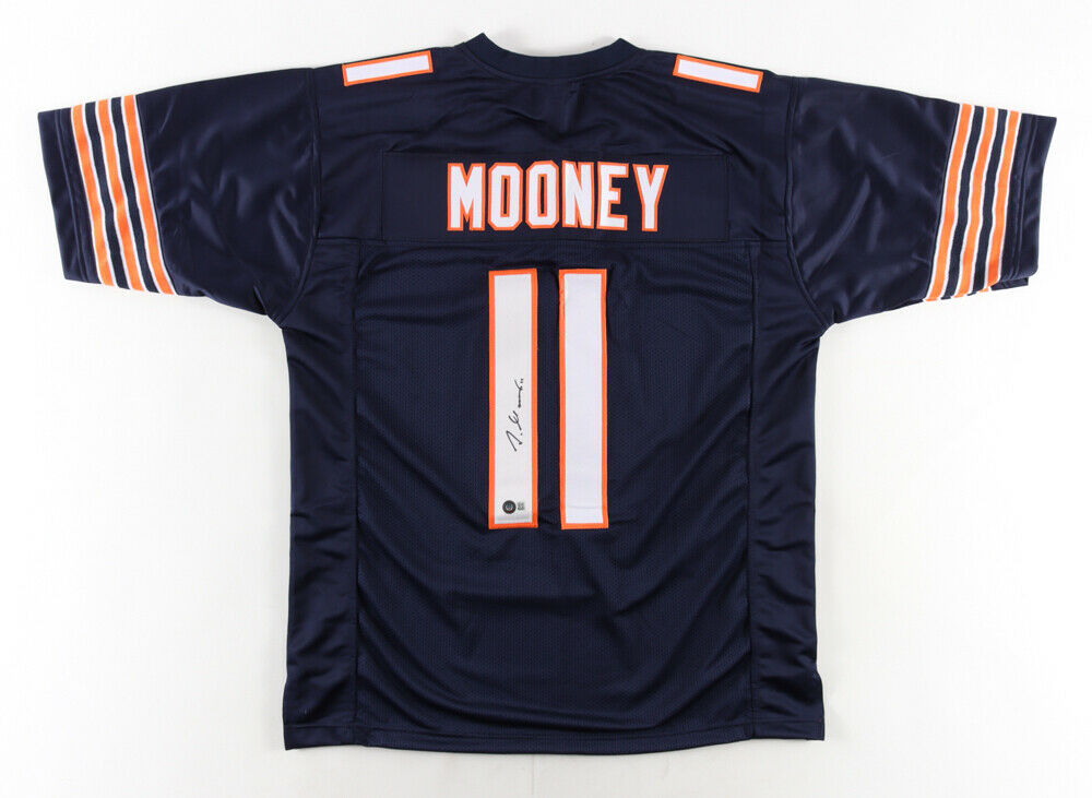 Custom on-field style jersey. Everything sewn on, size XL. Hand-signed by Darnell Mooney.The lot / autograph(s) includes an official Beckett Authentication Services serially-numbered hologram for authenticity purposes. The signing of this item was witnessed by Beckett. Authentication: Beckett Hologram
