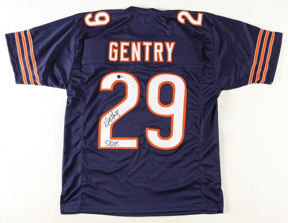 Custom on-field style jersey. Everything is sewn on, size XL. Hand-signed in black Sharpie pen by Dennis Gentry. The lot / autograph(s) includes an official Beckett Authentication Services serially numbered hologram and QR Code Card for authenticity purposes. The signing of this item was witnessed by Beckett.Authentication: Beckett QR Code Card
