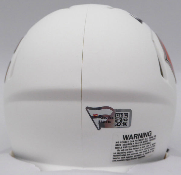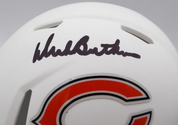 This is a White Flat White Speed Mini Helmet that has been hand signed by Dick Butkus. This item has been certified authentic by Fanatics and comes with their tamper-proof sticker.