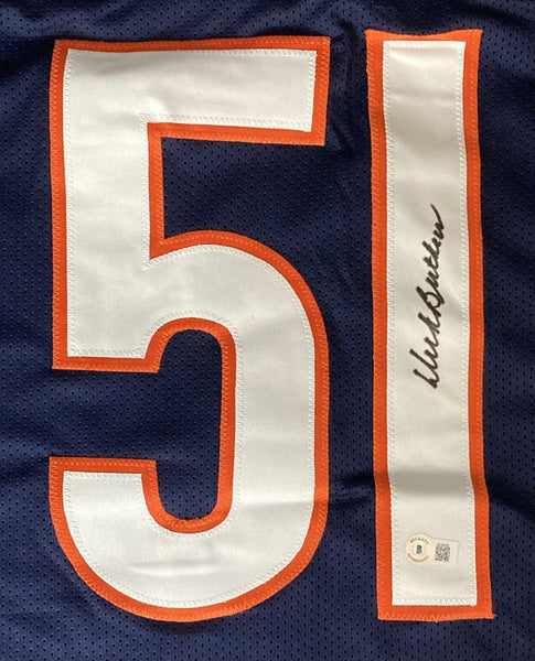 Featured is a Dick Butkus signed custom football jersey. This jersey has been hand signed by Butkus and comes with the Beckett hologram and certificate of authenticity. This jersey features professionally sewn letters and numbers and is size XL. This jersey has no team tags or emblems and is intended as a sports collectible.. SPECIFICATIONS Autographed By: Dick Butkus Team: Chicago Bears Sport: Football Authentication: Beckett Grading Services
