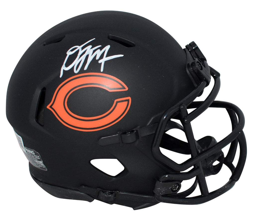 DJ Moore, star wide receiver for the Chicago Bears, has hand signed this Bears Riddell Speed Eclipse mini helmet at a private signing. This item is authenticated by Beckett Authentication Services and was signed in the presence of one of their representatives. Their tamper-evident hologram featuring a QR code and serial number is on the item. The authenticity can be verified online by entering the serial number or scanning the QR code.Item pictured may not be the exact item you will receive. It will be similar quality, and we guarantee your satisfaction.