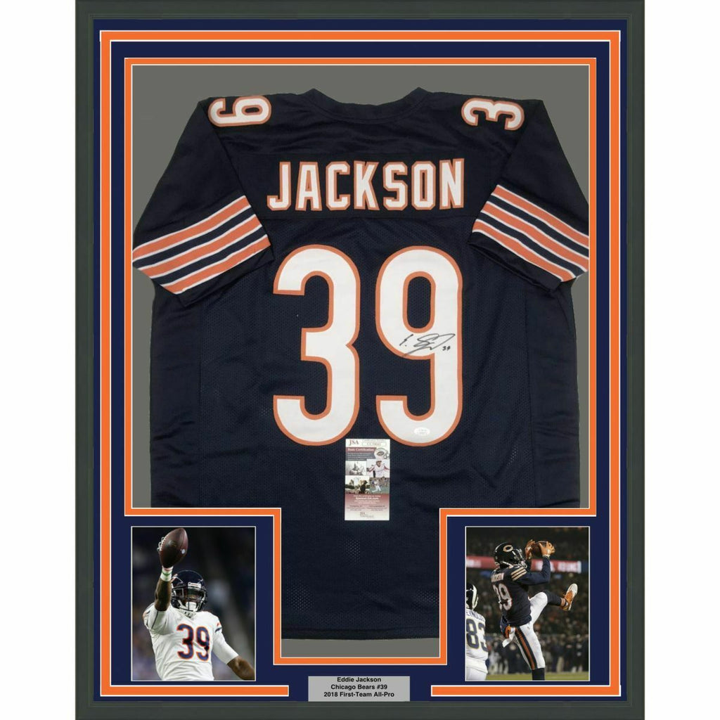 FRAMED Autographed/Signed EDDIE JACKSON 33x42 Chicago Blue Jersey JSA COA Auto
