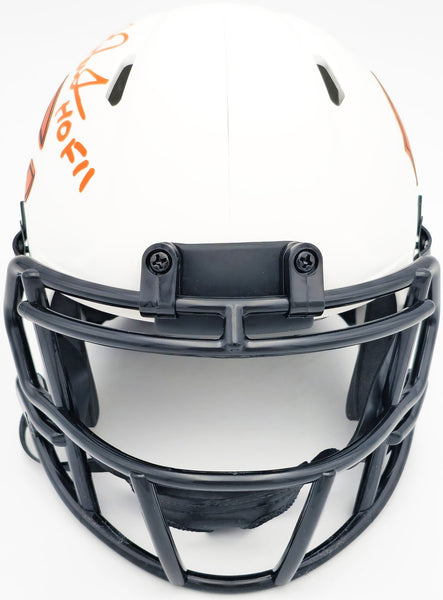 This is a Chicago Bears Lunar Eclipse White Speed Mini Helmet that has been hand signed by Richard Dent. The Eclipse helmets are delicate and may have some marks or scratches on them. This item was inscribed "HOF 11." This item has been witnessed and certified authentic by Beckett Authentication (BAS) and comes with their tamper-proof witness sticker.