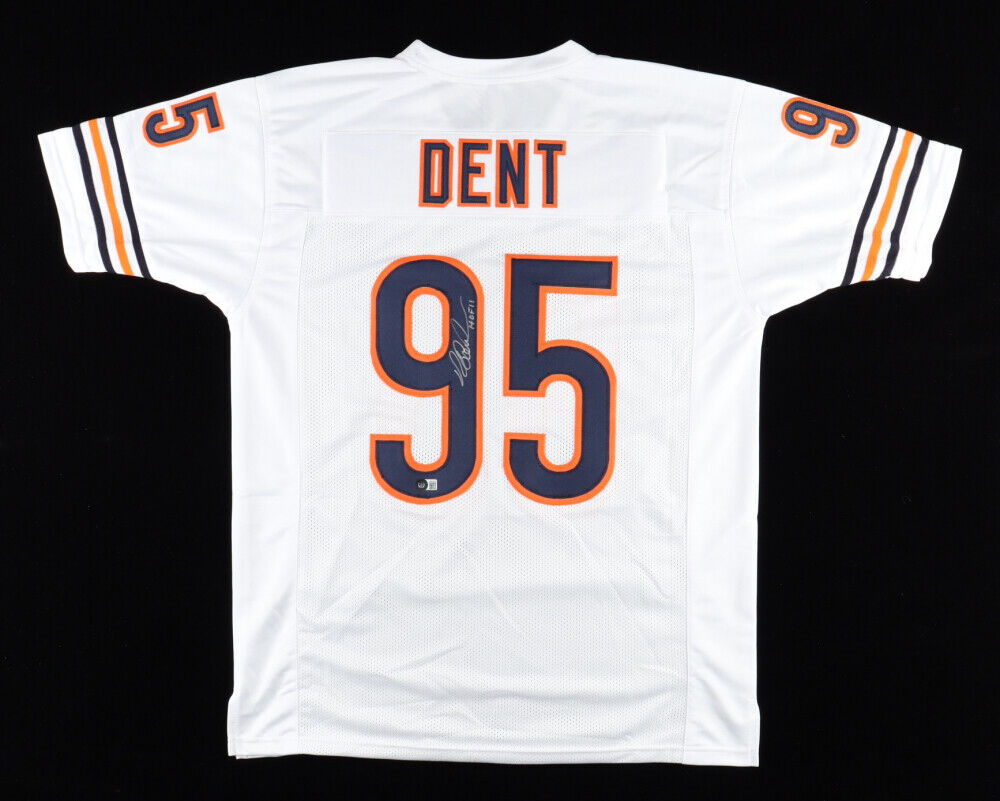 Custom on-field style jersey. Everything is sewn on, size XL. Hand-signed and inscribed by Richard Dent (HOF).The lot / autograph(s) includes an official Beckett Authentication Services serially numbered scannable hologram and QR Code card for authenticity purposes. The signing of this item was witnessed by Beckett.Authentication: Beckett Scannable Hologram with QR Code card