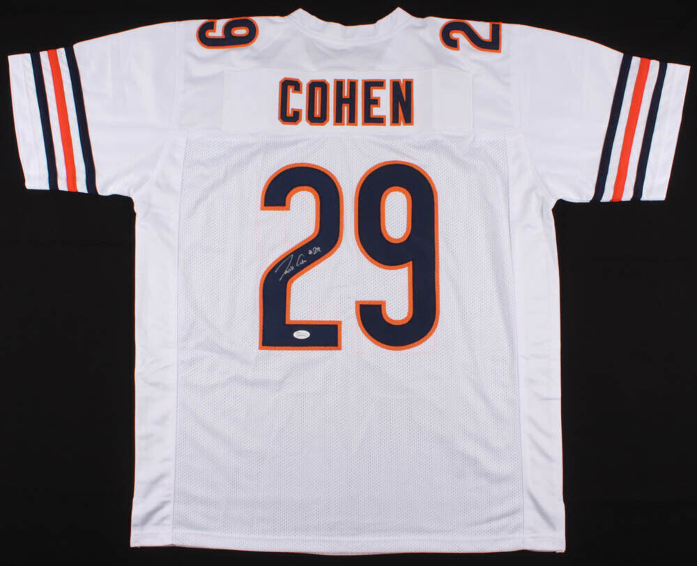 Custom on-field style jersey. Everything is sewn on, size XL. Hand-signed in silver paint pen by Tarik Cohen. The lot / autograph(s) includes an official James Spence Authentication (JSA) hologram and matching COA for authenticity purposes. The signing of this item was witnessed by JSA.Authentication: JSA COA