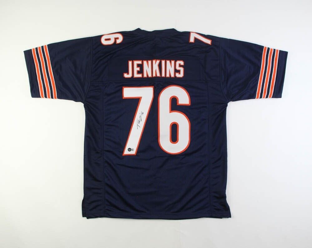 Custom on-field style jersey. Everything sewn on, size XL. Hand-signed by Teven Jenkins.The lot / autograph(s) includes an official Beckett Authentication Services serially numbered hologram for authenticity purposes. The signing of this item was witnessed by Beckett.Authentication: Beckett Hologram
