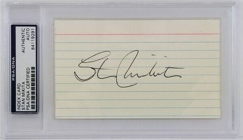 Blackhawks Stan Mikita Authentic Signed 3x5 Index Card Autographed BAS Slabbed