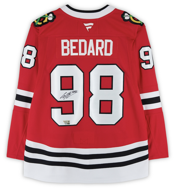 This authentic Chicago Blackhawks red Fanatics branded Premium jersey has been personally hand-signed by Connor Bedard. It is officially licensed by the National Hockey League and comes with an individually numbered, tamper-evident hologram from Fanatics Authentic. To ensure authenticity, the hologram can be reviewed online. This process helps to ensure that the product purchased is authentic and eliminates any possibility of duplication or fraud.Made in the USAPersonally Autographed by Connor BedardFanatics Authentic Presented by Mounted MemoriesIncludes tamper-evident hologram to ensure authenticityOfficially licensed This product is guaranteed authentic and includes a Fanatics Certificate of Authenticity and an accompanying tamper-evident Fanatics Hologram.