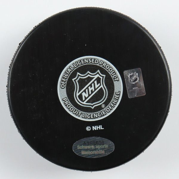 Chicago Blackhawks Logo Hockey Puck. Hand-signed in silver paint-pen by Tony Esposito.The autograph includes an official Schwartz Sports Hologram and matching COA for authenticity purposes.Authentication: Schwartz Sports COA