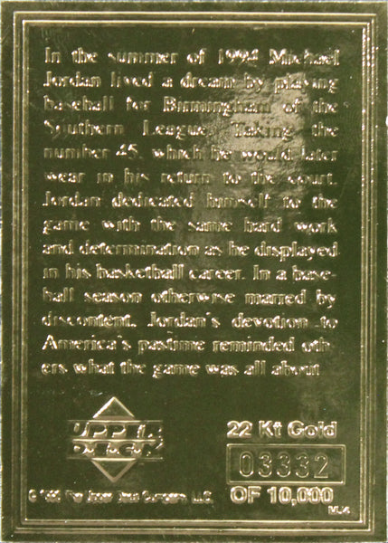 This is a 1996 Upper Deck Michael Jordan Career Collection #MJ4 #3332/10000 22 Kt Gold Card. This card is not autographed.