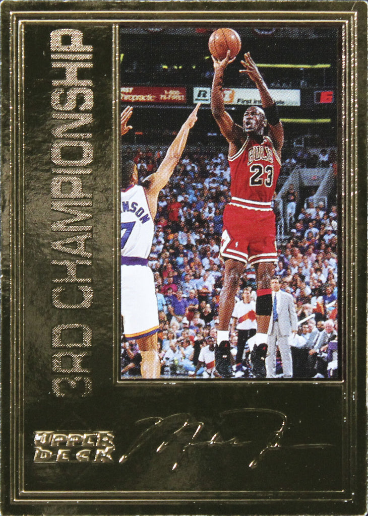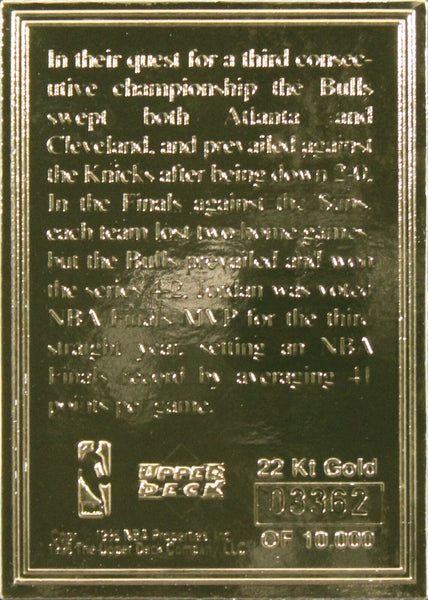 This is a 1996 Upper Deck Michael Jordan Career Collection #MJ6 #3362/10000 22 Kt Gold Card. This card is not autographed.