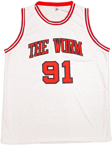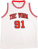 This is a White Jersey that has been hand signed by Dennis Rodman. This is a custom jersey with no name brand. The approximate size is XL. It has nice sewn in name and numbers. This item has been certified authentic by JSA and comes with their tamper-proof hologram and matching certificate of authenticity.