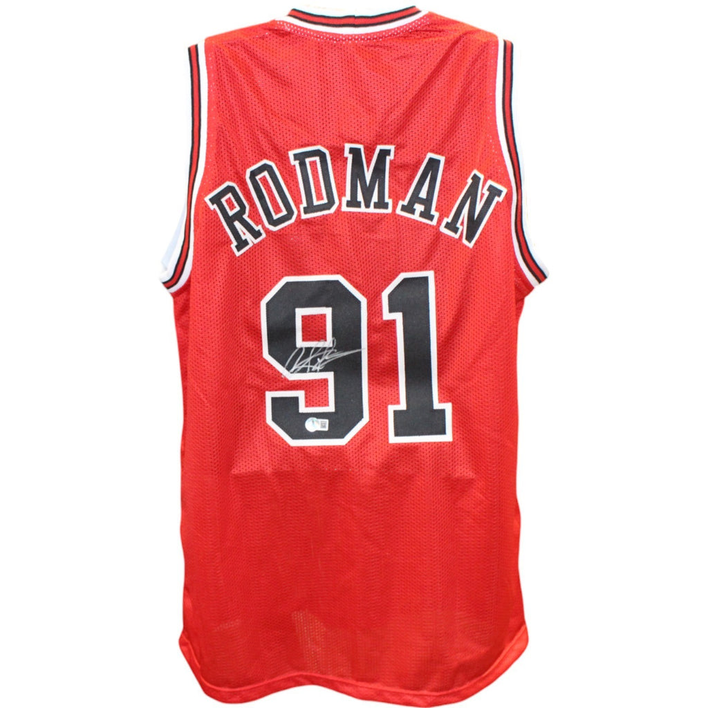 The number in the listing title is just an inventory sku for our records and is not the authentication number. This item pictured is a stock photo unless otherwise noted. This is a Pro Style Size XL Red Jersey with sewn on numbers that was personally autographed by Dennis Rodman. Includes a certificate of authenticity from Beckett Authentication Services (BAS) and Denver Autographs.FREE SHIPPING within the USA on orders over $10!