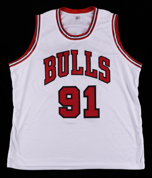 Dennis Rodman Signed Chicago Bulls White Jersey (JSA COA) 5xNBA Champion