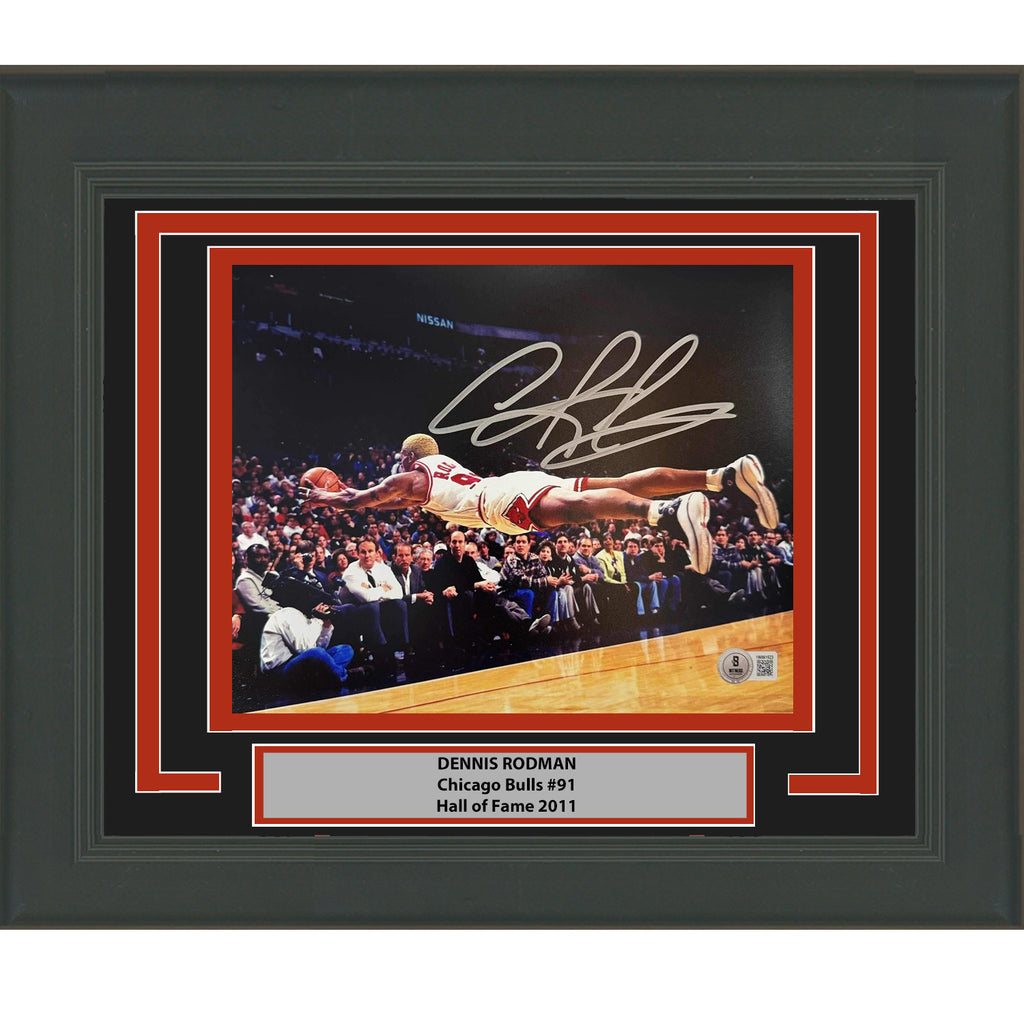Framed Autographed/Signed Dennis Rodman Chicago Bulls 16x20 Photo BAS COA The item is professionally framed & matted and is ready to be hung in your man cave! Nameplate and matting requests can be made.