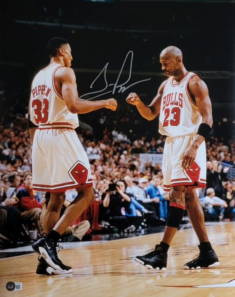 Scottie Pippen Signed Chicago Bulls with Jordan 16X20 Photo Beckett Witnessed