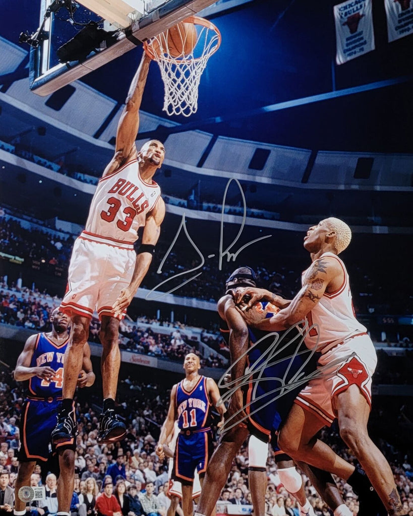 Scottie Pippen Signed Chicago Bulls with Rodman 16X20 Photo Beckett Witnessed