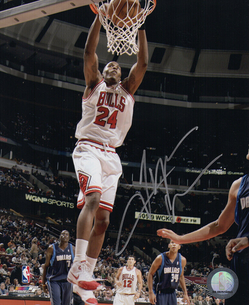 Tyrus Thomas Signed Chicago Bulls White Jersey Dunk 8x10 Photo - (SCHWARTZ COA)