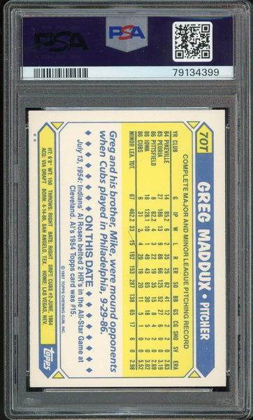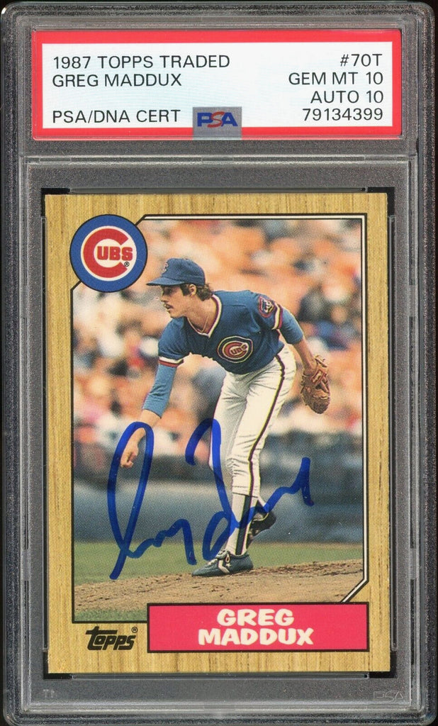 1987 Topps Traded #70T Greg Maddux Cubs On Card PSA 10/10 Auto GEM MINT