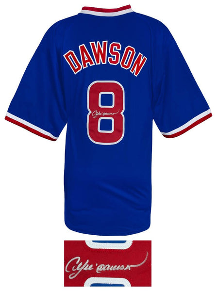 Andre Dawson signed blue throwback custom baseball jersey. Item comes with a Schwartz Sports Memorabilia tamper-proof numbered hologram and Certificate of Authenticity which can be verified online.