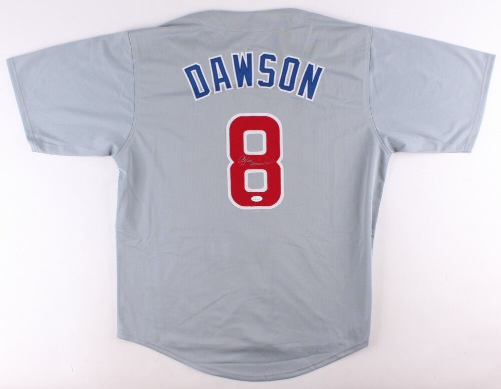 Custom on-field style jersey. Everything is sewn on, size XL. Hand-signed in silver paint pen by Andre Dawson (Expos, HOF). The lot / autograph(s) includes an official James Spence Authentication (JSA) hologram and matching COA for authenticity purposes. The signing of this item was witnessed by JSA.Authentication: JSA COA