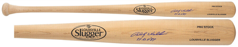 Billy Williams signed Louisville Slugger Pro Stock blonde baseball bat with 'HOF 87' inscription. Item comes with a Schwartz Sports Memorabilia tamper-proof numbered hologram and Certificate of Authenticity which can be verified online.