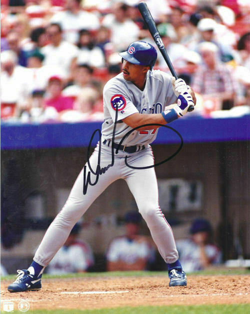 Derrick May Autographed/Signed Chicago Cubs 8x10 Photo 15314 This is an officially licensed 8x10 photo which has been personally autographed by former Chicago Cubs player Derrick May.This photo was signed at our sportscards show on July 3, 1993 at the Regency hotel and includes a certificate of authenticity from Denver Autographs.