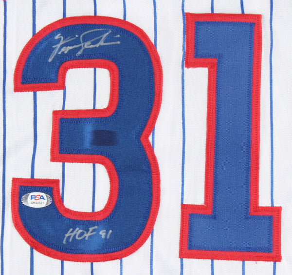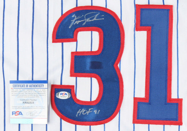 Custom on-field style jersey. Everything sewn on, size XL. Hand-signed by Fergie Jenkins (HOF). The lot / autograph(s) includes an official PSA/DNA hologram and matching COA for authenticity purposes.Authentication: PSA COA Shop our ebay store / Friendly Confines Collectibles for thousands of different autographed jerseys
