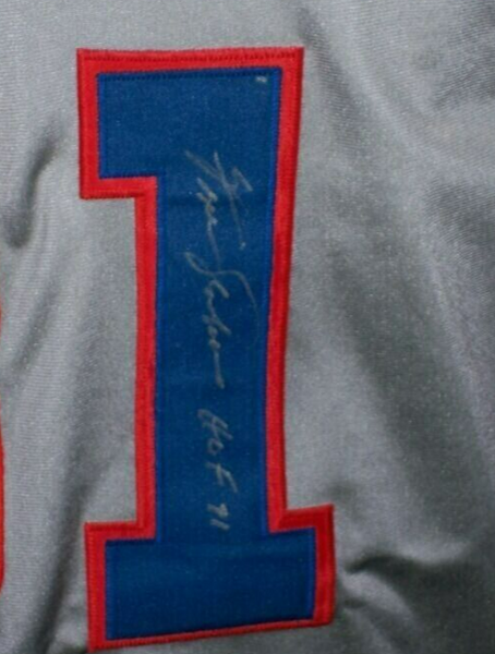 Custom on-field style jersey. Everything is sewn on, size XL. Hand-signed and inscribed in black felt-pen by Fergie Jenkins (HOF). The lot / autograph(s) includes an official James Spence Authentication (JSA) hologram and matching COA for authenticity purposes. The signing of this item was witnessed by JSA.Authentication: JSA COA Shop our ebay store / Friendly Confines Collectibles for thousands of different autographed jerseys