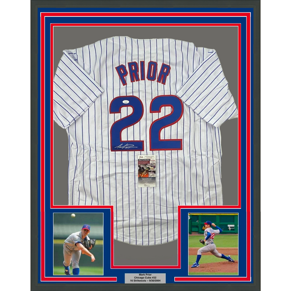 Framed Autographed/Signed Mark Prior 33x42 Chicago Pinstripe Jersey JSA COA The item is professionally framed & matted with two 8x10 photos, measures 33"x42" and is ready to be hung in your man cave! NOTE: COA card will be mounted on the back of the frame, not inside it on top of the jersey as seen in the picture.