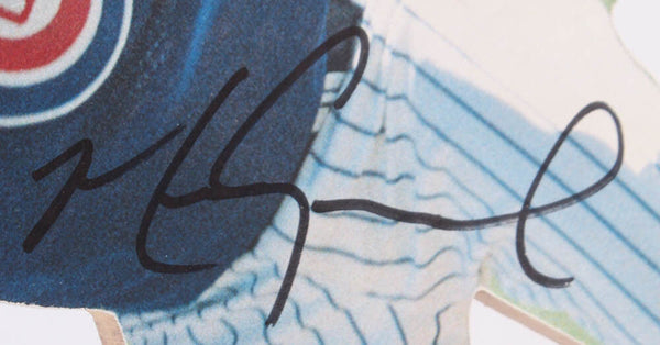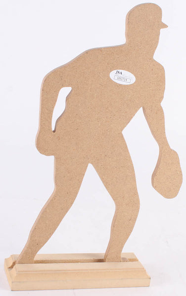 Wooden cutout figure measures 10" in height. The figure has been hand-signed in blue felt-tip pen by Mark Grace. The lot / autograph(s) includes an official James Spence Authentication (JSA) hologram and matching COA for authenticity purposes.Authentication: JSA COA