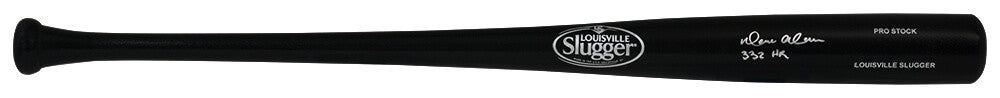 Moises Alou signed Louisville Slugger Pro Stock black baseball bat with '332 HRs' inscription. Item comes with a Schwartz Sports Memorabilia tamper-proof numbered hologram and Certificate of Authenticity which can be verified online.
