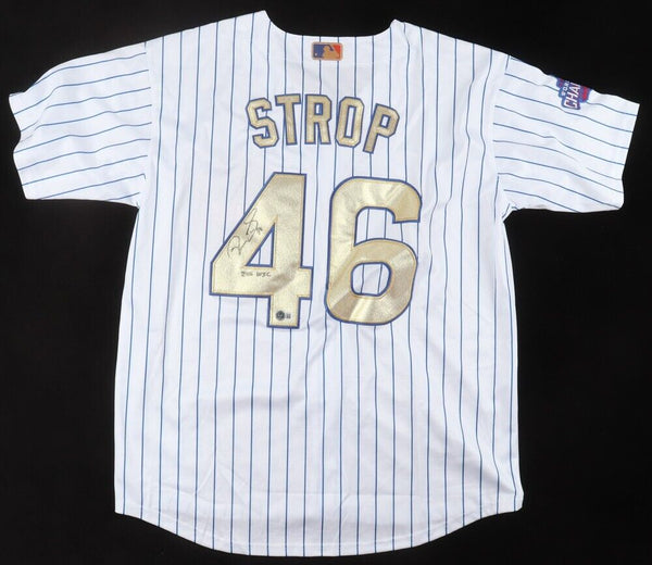 Custom on-field style jersey. Everything is sewn on, size adult Large. Hand-signed and inscribed by Pedro Strop.The autograph(s) includes an official James Spence Authentication (JSA) hologram and QR Code Card for authenticity purposes.Authentication: JSA Hologram with QR Code Card
