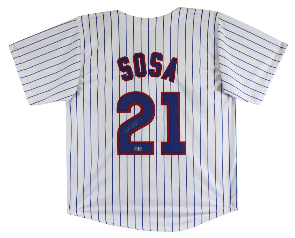 Sammy Sosa Authentic Signed White Pinstripe Pro Style Jersey BAS Witnessed