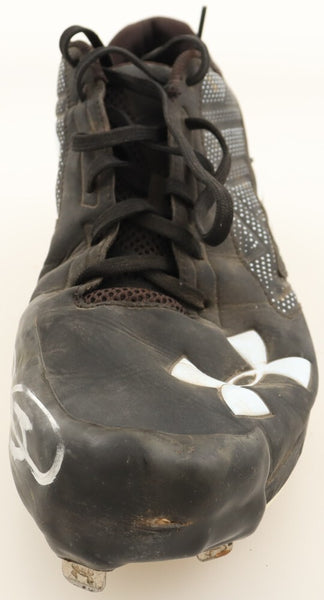 Under Armour Baseball Cleat, size 12.5. Hand-signed by Sammy Sosa (Chicago Cubs).Please note, the cleat has been game-worn by an unknown player.Please see photos for details regarding the condition of the cleat.The autograph includes an official Beckett Authentication Services serially numbered hologram and QR Code card for authenticity purposes.Authentication: Beckett Hologram with QR Code card