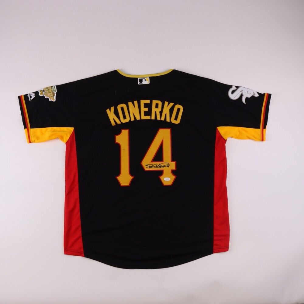 Custom on-field style jersey. Everything sewn on, size XL. Hand-signed by Paul Konerko (Chicago White Sox, Los Angeles Dodgers, Cincinnati Reds).The lot / autograph(s) includes an official James Spence Authentication (JSA) hologram and matching COA for authenticity purposes. Authentication: JSA COA