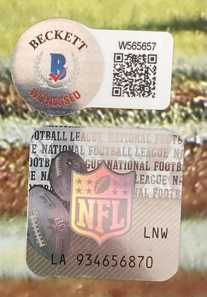 Featured is a Christian McCaffrey signed 16x20 San Francisco 49ers photo. This photo has been hand signed by McCaffrey and comes with the Beckett hologram and certificate of authenticity. This photo would make a great addition to any sports memorabilia collection! SPECIFICATIONS Autographed By: Christian McCaffrey Team: San Francisco 49ers Sport: Football Authentication: Beckett Grading Services