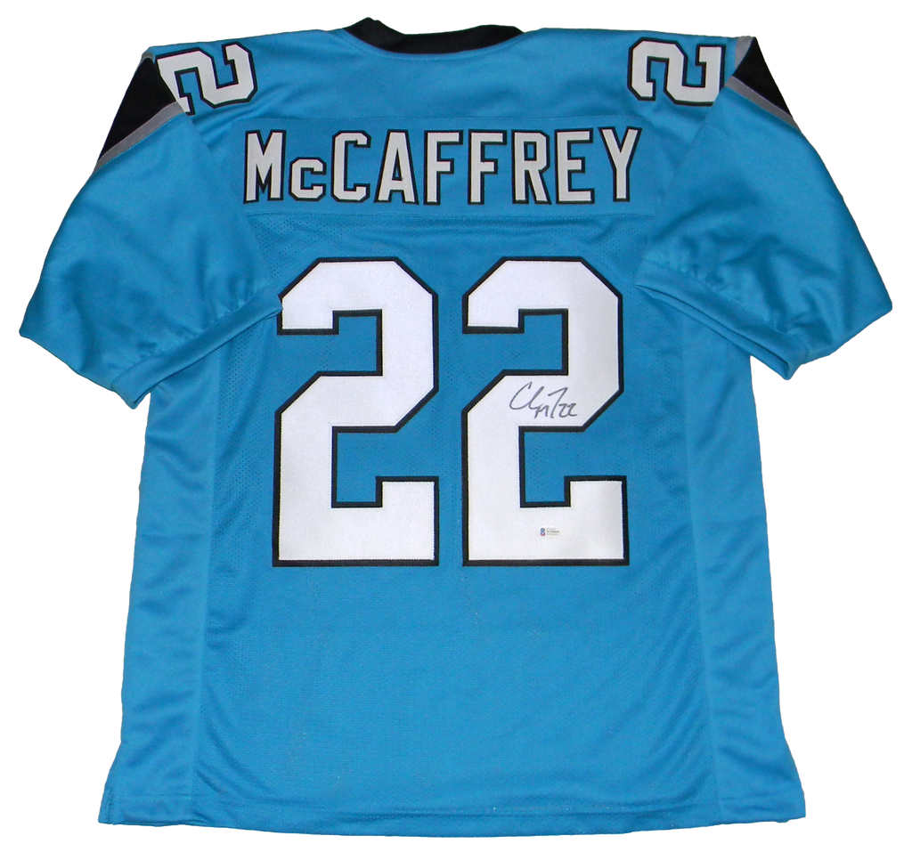 Christian McCaffrey, Pro Bowl running back for the Carolina Panthers, has hand signed this blue custom jersey. Jersey is size XL and all letters/numbers are sewn-on. This item comes with a certificate of authenticity (COA) from Beckett Authentication Services and was signed in the presence of one of their representatives. You will receive a serial-numbered COA along with a matching serial-numbered sticker on the jersey. The authenticity can be verified online by entering the serial number.Item pictured may not be the exact item you will receive. It will be similar quality, and we guarantee your satisfaction.