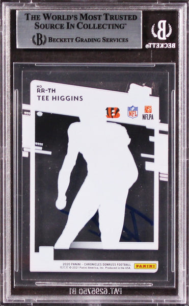This Autographed 2020 Donruss Clearly Rated Rookies #11 Card has been Personally Signed by Tee Higgins of the Cincinnati Bengals. This item is 100% Authentic, it comes slabbed and authenticated by Beckett Authentication Services. The authenticity can be verified on Beckett Authentication Services website.