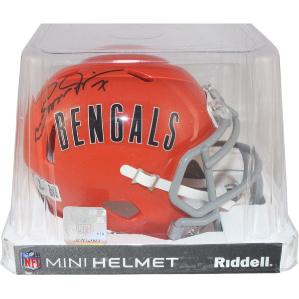 The number in the listing title is just an inventory sku for our records and is not the authentication number. The item pictured is a stock photo unless otherwise noted. This is a Cincinnati Bengals Throwback 1968-1979 Mini Helmet that was personally autographed by Boomer Esiason. Includes a certificate of authenticity from Beckett Authentication Services (BAS) and Denver Autographs.FREE SHIPPING within the USA on orders over $10!