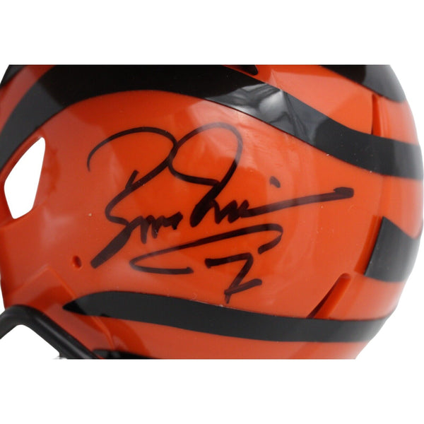 The number in the listing title is just an inventory sku for our records and is not the authentication number. The item pictured is a stock photo unless otherwise noted. This is a Cincinnati Bengals Mini Helmet that was personally autographed by Boomer Esiason. Includes a certificate of authenticity from Beckett Authentication Services (BAS) and Denver Autographs.