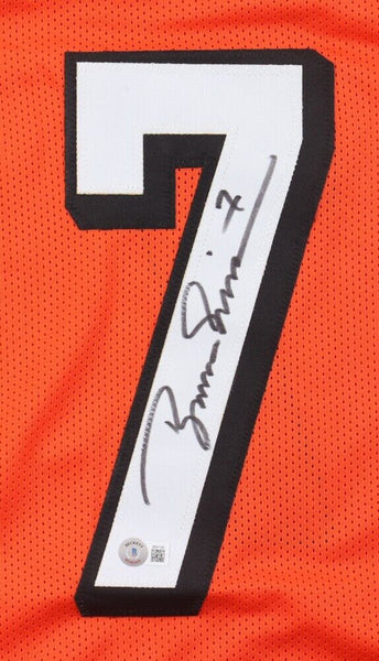 Custom on-field style jersey. Everything is sewn on, size XL. Hand-signed by Boomer Esiason (Cincinnati Bengals, New York Jets, Arizona Cardinals).The lot / autograph(s) includes an official Beckett Authentication Services serially-numbered hologram and QR Code Card for authenticity purposes. The signing of this item was witnessed by Beckett.Authentication: Beckett Hologram and QR Code Card