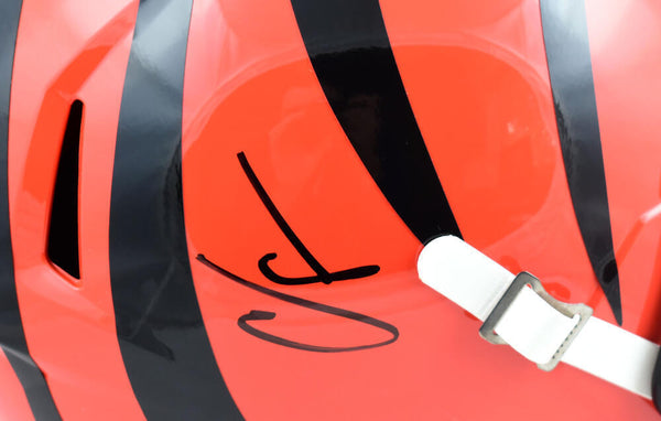Chad Johnson Autographed Cincinnati Bengals F/S Speed Helmet-Beckett W Hologram *Black This is a Hand Autograph of Chad Johnson of the Cincinnati Bengals on a Riddell Football Full Size Speed Replica Helmet.This item has a Beckett Witness Authentication, which comes with a Beckett #'ed hologram and a QR code for verification. You can view this item on the Beckett Authentication website. It was signed either at a public autograph appearance or a private signing. This is a stock photo of the item. Although you may not receive this exact item, the item you receive is virtually identical and brand new in great shape.