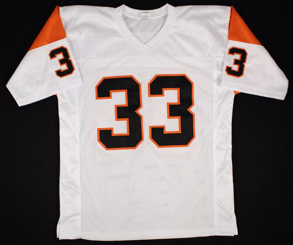 Custom on-field style jersey. Everything is sewn on, size XL. Has been hand-signed by David Fulcher.The autograph includes an official Beckett Authentication Services serially numbered scannable hologram and QR Code card for authenticity purposes. The signing of this item was witnessed by Beckett.Authentication: Beckett Scannable Hologram with QR Code card