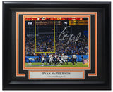 Featured is an Evan McPherson signed and framed 8x10 Cincinnati Bengals game winning kick photo. This photo was hand signed by Evan McPherson. and has been authenticated by Fanatics authentication services. Included with the photo is a Fanatics hologram and certificate of authentication. Brand new professional framing featuring double matting and engraved nameplate. The frame measures approximately 14x11 in total size, and it is ready for display. This item would make a great addition to any sports memorabilia collection. SPECIFICATIONS Autographed By: Evan McPherson Team: Cincinnati Bengals Sport: Football Authentication: Beckett Grading Services